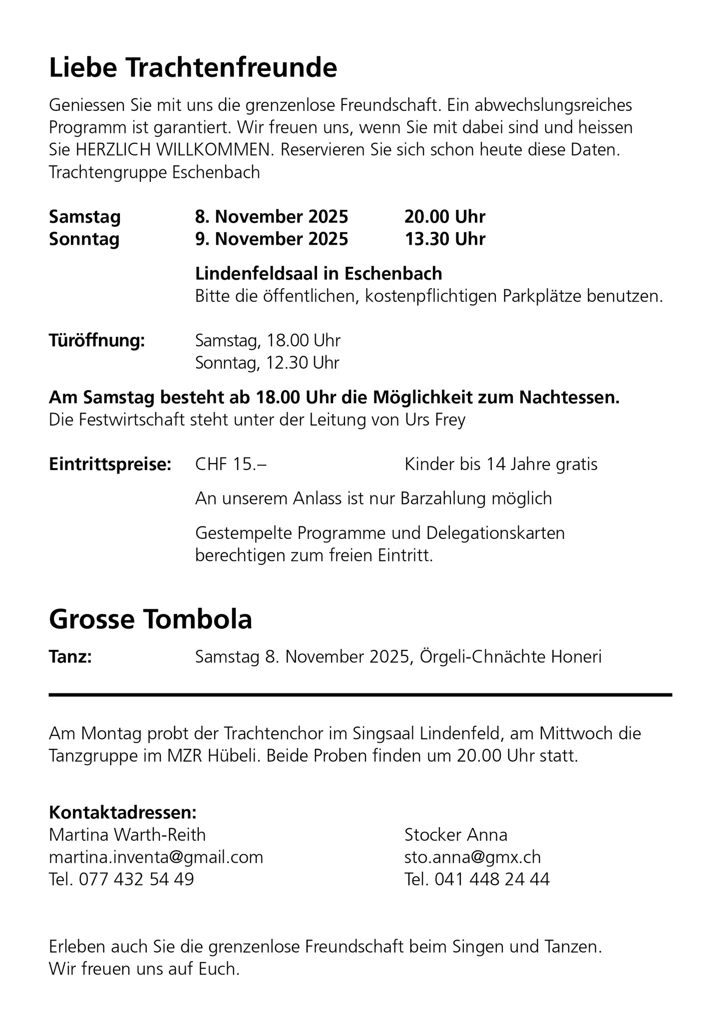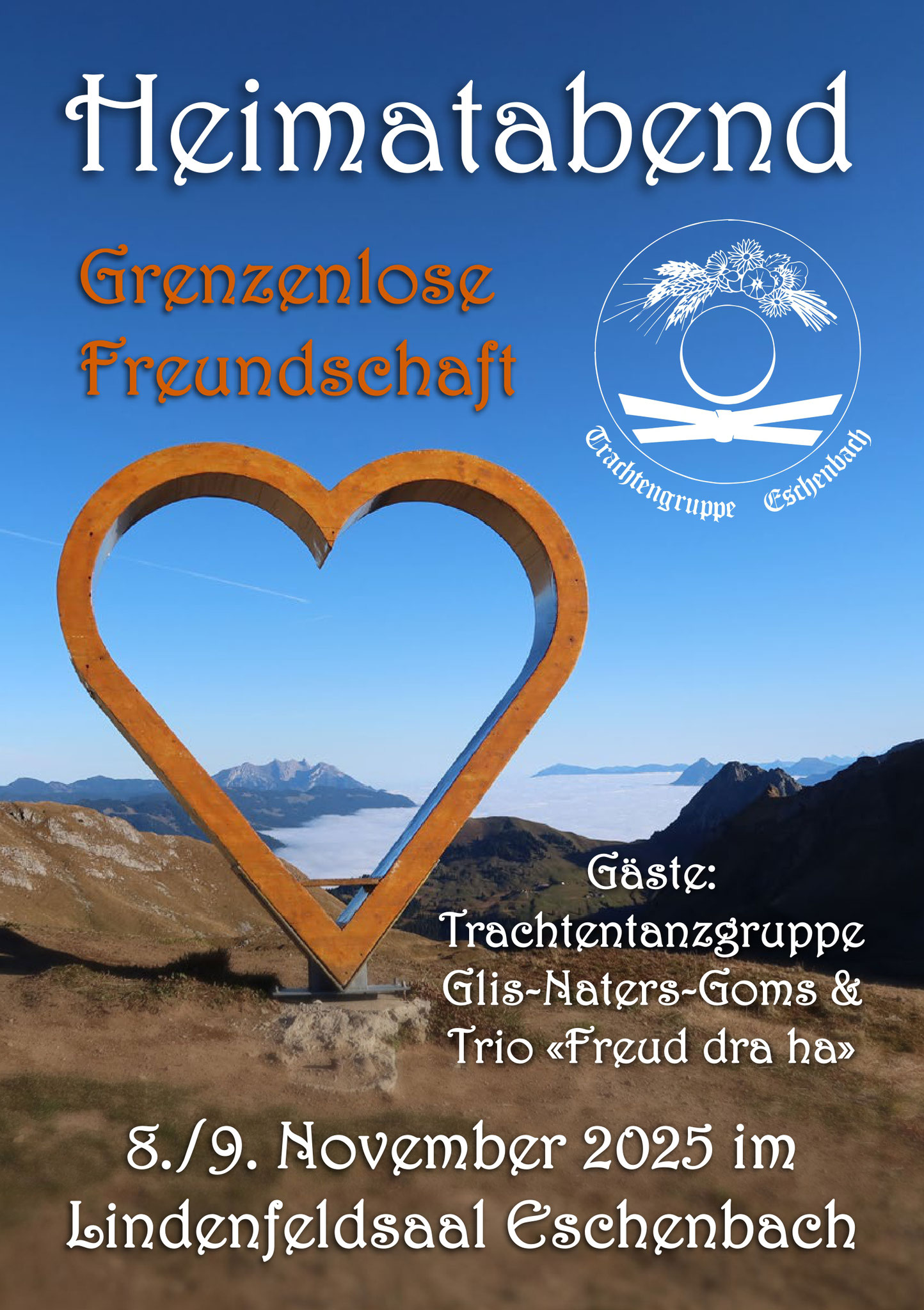 Geniessen Sie mit uns die GRENZENLOSE FREUNDSCHAFT. Ein abwechslungsreiches Programm ist garantiert. Wir freuen uns, wenn Sie mit dabei sind und heissen Sie HERZLICH WILLKOMMEN. Reservieren Sie sich schon heute diese Daten.